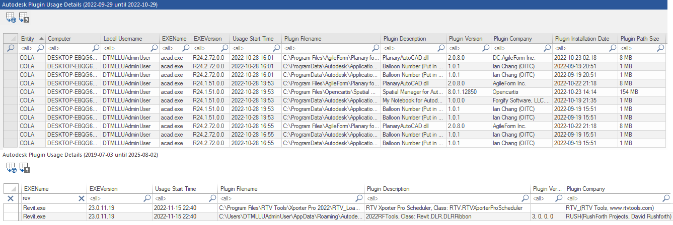 SofTrack automatically detects usage of all 3rd party Autodesk® AutoCAD® and Revit® plug-ins and add-ins. Usage detection