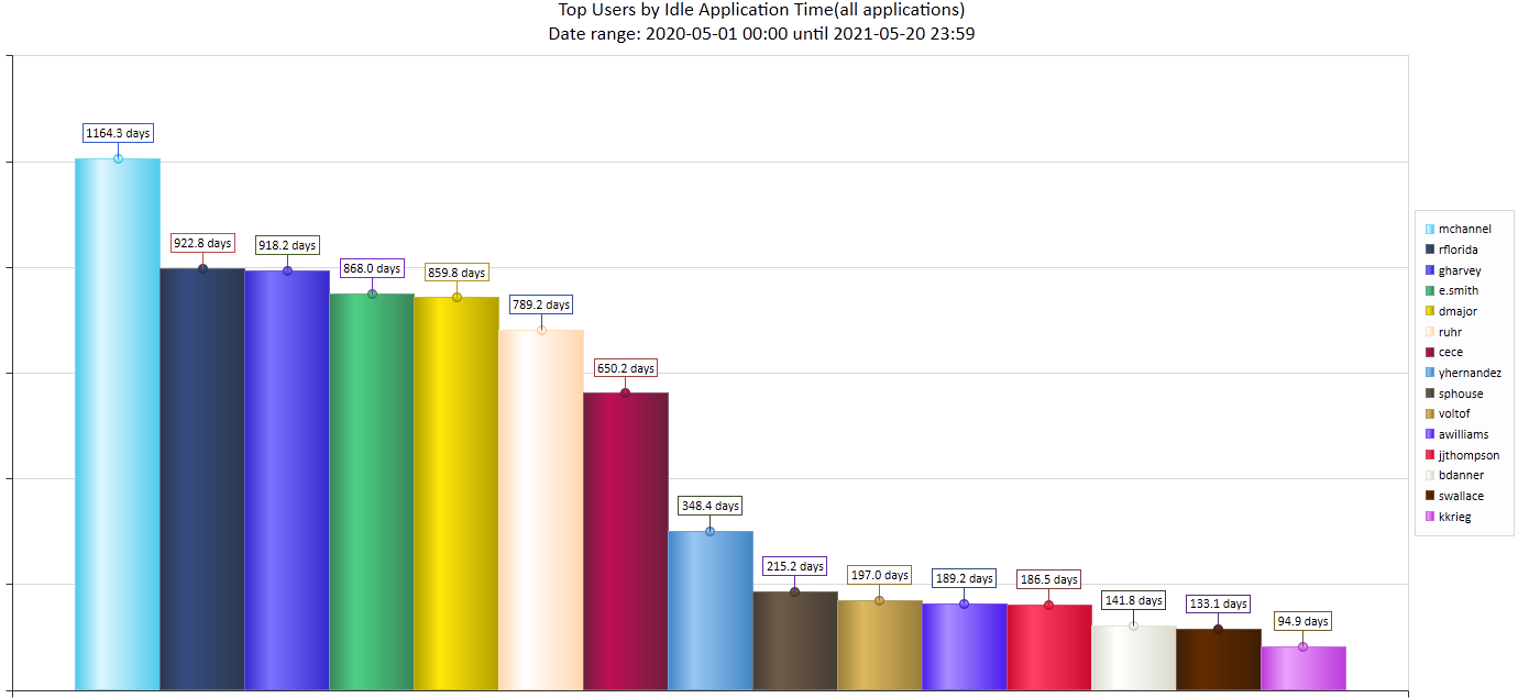 The following is a built-in Dashboard chart showing top idle users during a 12-month period.