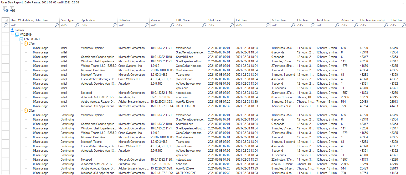 When viewing user logon activity, the intraday details can be directly exported for each selected date.
